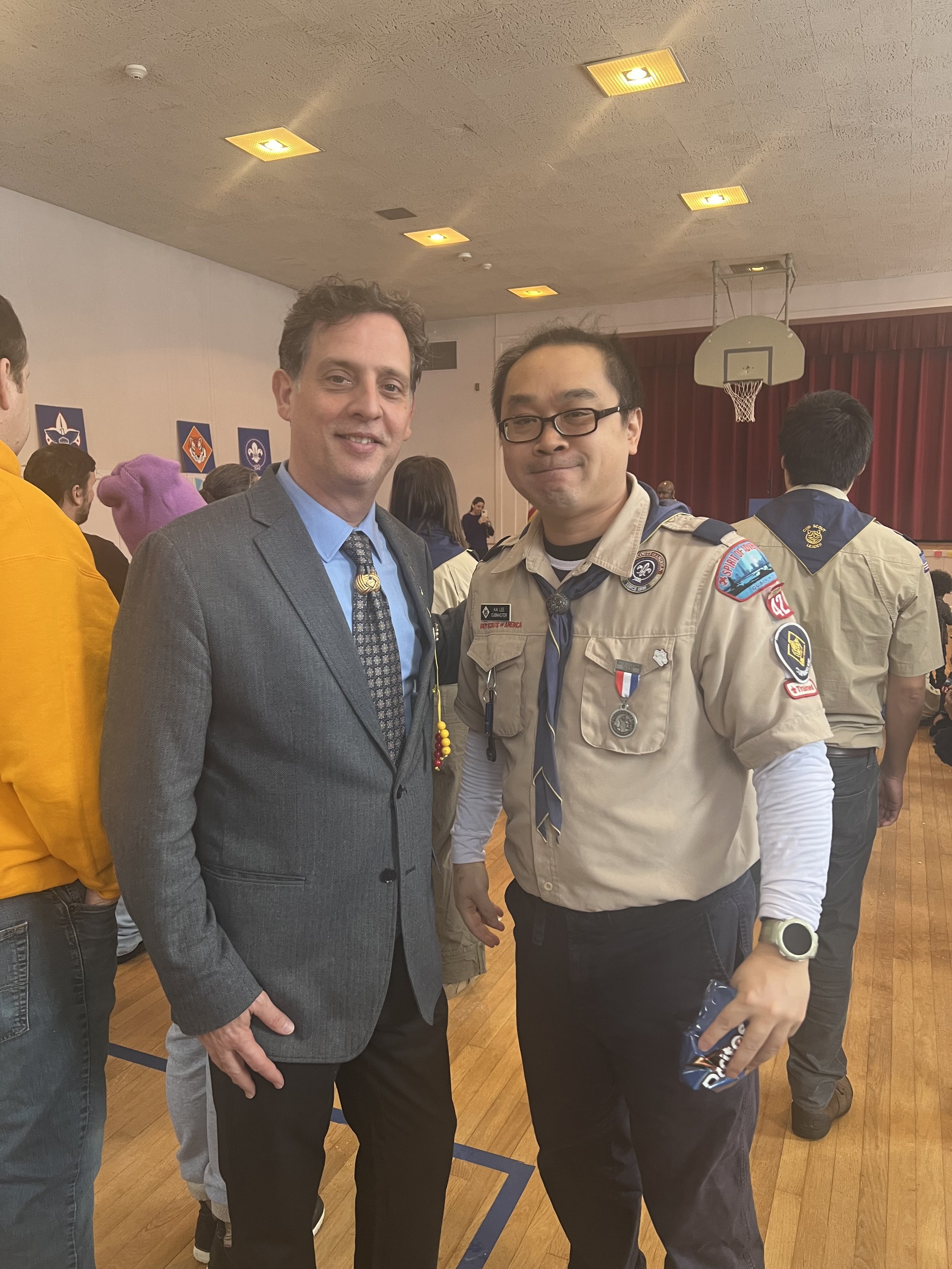 On Saturday, February 7, my wife and I attended Scout Pack 42's Blue & Gold Celebration. It was fun to join my friends in Scouts leadership, Kai Lee and Ray Theberge, along with all the scouting families. Sporting my Cub Scout achievement beads and scarf tie, it brought back some fond memories from my days in scouting as a kid.