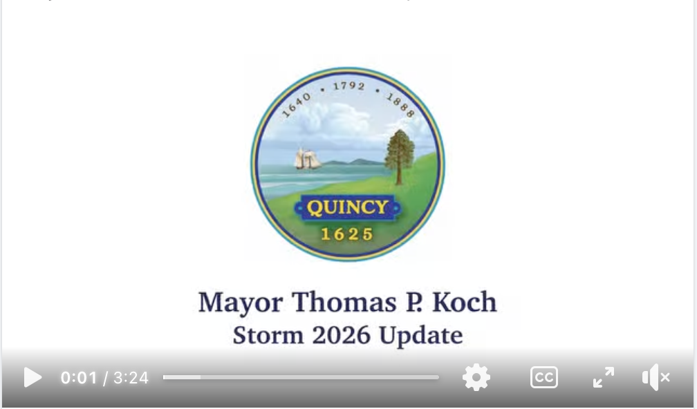 For updates and emergency notices, please tune to Quincy Access Television; visit https://www.quincyma.gov/ and follow the City of Quincy’s Facebook or Instagram Pages.