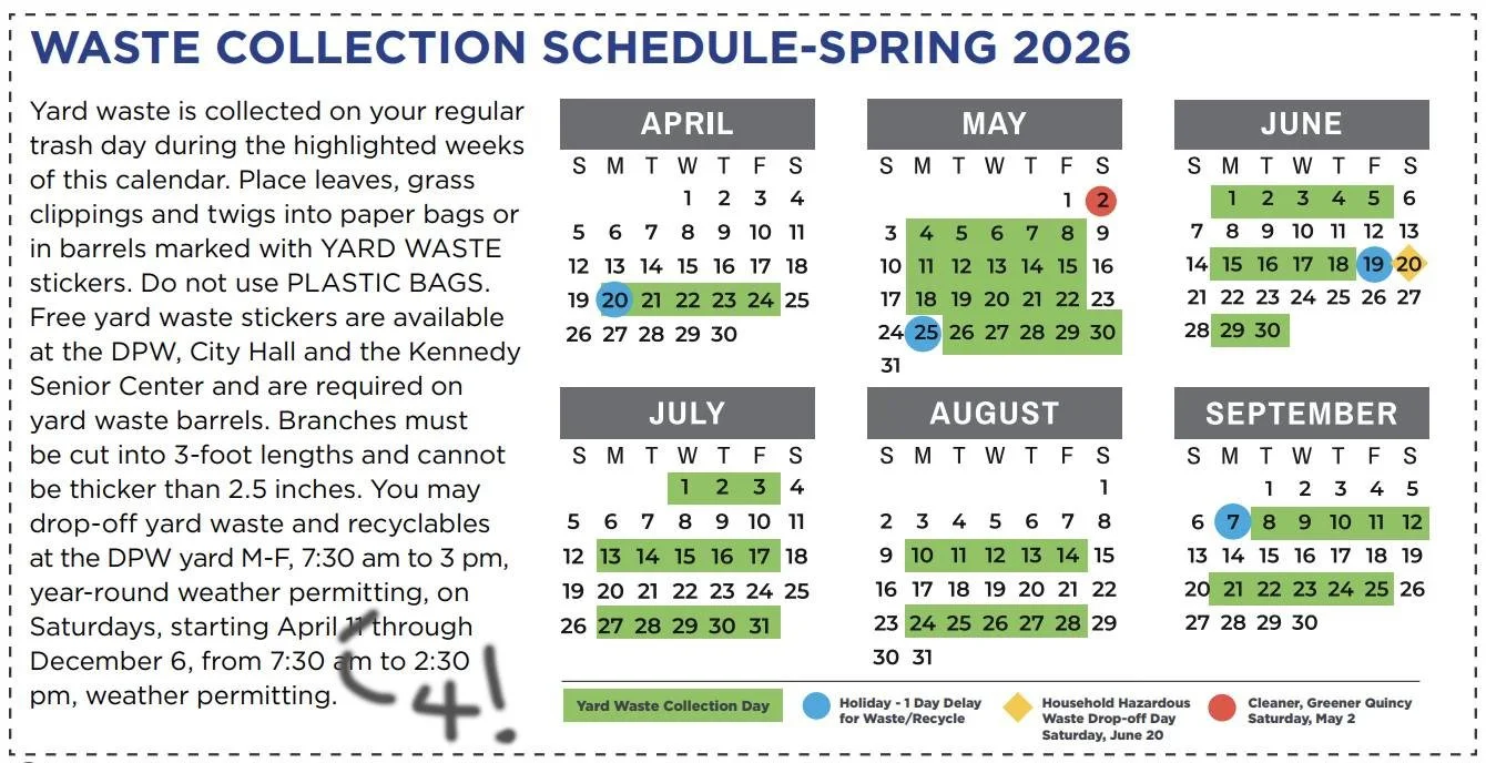 Pot Hole Hotline: (617)-376-1914 or potholehotline@quincyma.gov