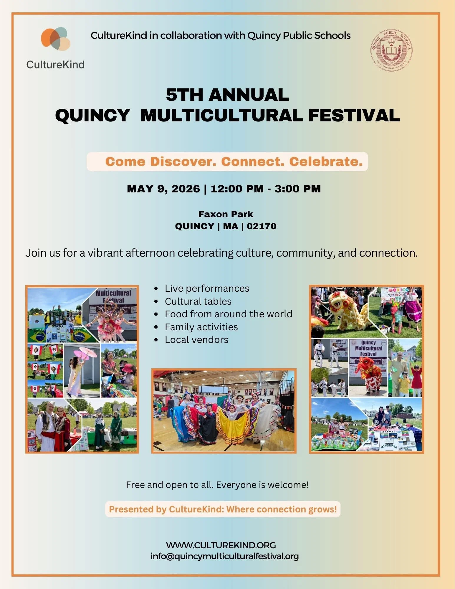 On Saturday, May 9th, from 12:00 PM - 3:00 PM at Faxon Park, enjoy learning about the many different cultures that make up our city that we know and love. Stop by and say hello to the co-founder and Ward 3 resident Mihaela Rusu. Always a fun event!